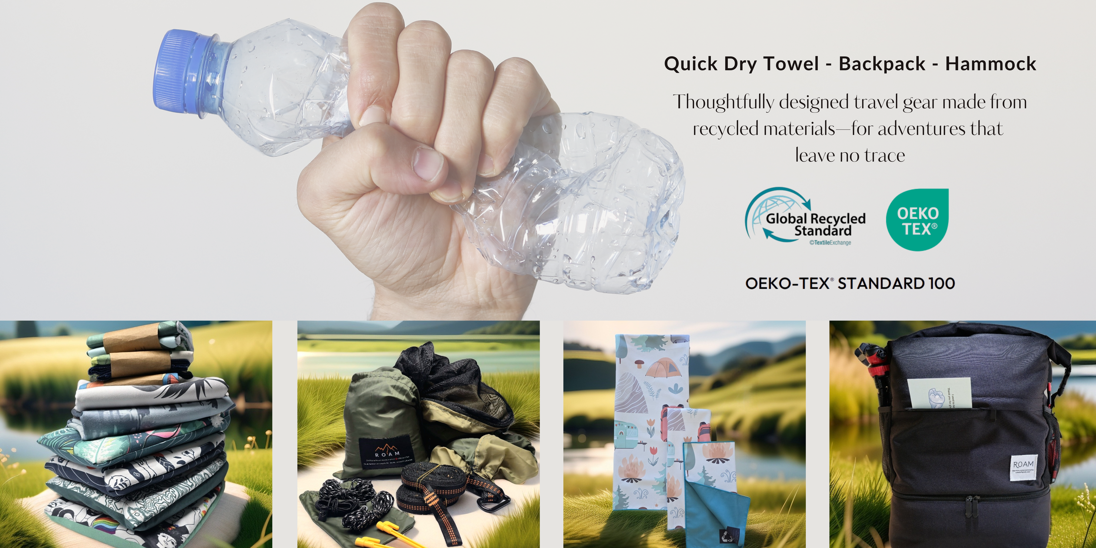 rPET materials are known for their toughness, making them ideal for outdoor gear like our quick-dry towel, backpack and hammock. They often outshine traditional materials in terms of quality and longevity.