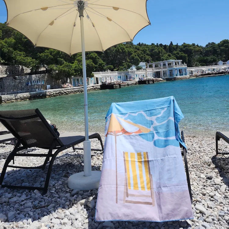 "I absolutely love this towel! It's eco-friendly, 100% recyclable, and made from plastic bottles, such a great sustainable choice. It dries super fast and is very practical. I used it at the beach, and it was perfect. Highly recommend!"