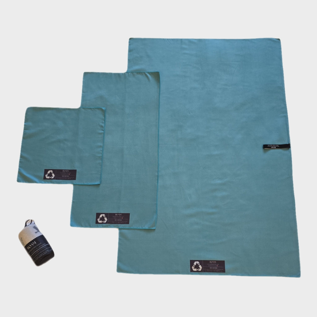 Embrace a new era of travel with our Earth-Friendly 3 Set Towel - 100% RECYCLED (80% Recycled Polyester, 20% Recycled Polyamide), made from 5-15 recycled plastic bottles - GRS CERTIFIED, where sustainability meets ultimate comfort. Crafted with our planet in mind, our 3-set towel is the perfect companion for conscious adventurers like you.