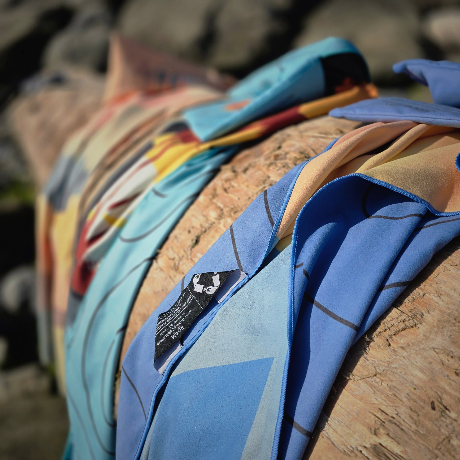 Eco-Conscious Materials: 100% Recycled Materials, made from 20 Recycled Plastic Bottles our towel is gentle on your skin and our planet. It comes with a hang loop and secret pocket to put your essentials; keys, wallet or smartphone.
